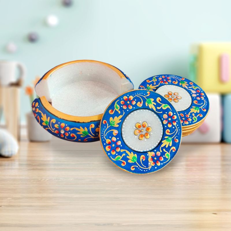 Coasters perfect for use in any room of the house, this set of 6 round coasters coordinates with any type of decor in your home or office. Keep your desk or table top elegantly free from moisture.Classic design can match any decor, they can be used anywhere like kitchen counter tops, dining room tables, coffee tables. Great gift for your parents, siblings, boy or girlfriend.Marble coaster can be usedĀ for drinks and suitable for multipurpose usage. You can use it as candle holder or improve your decoration by keeping a flower on top of it in your office or living room
