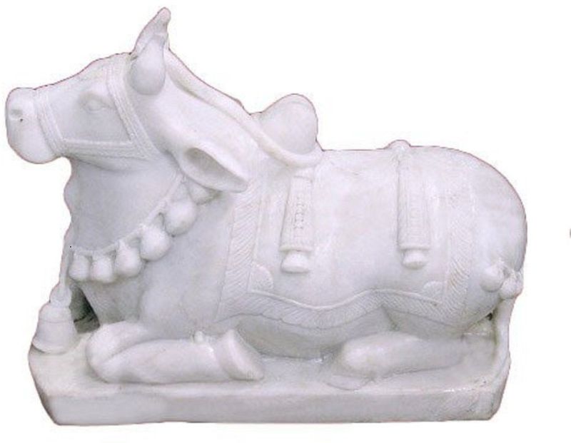 1. Material: Marble Nandi statues are crafted from high-quality marble, known for its smooth texture and natural elegance. The marble can range in color from pristine white to shades of cream, beige, or even green, depending on the type used. The natural veining of the marble adds to the statue's visual appeal.