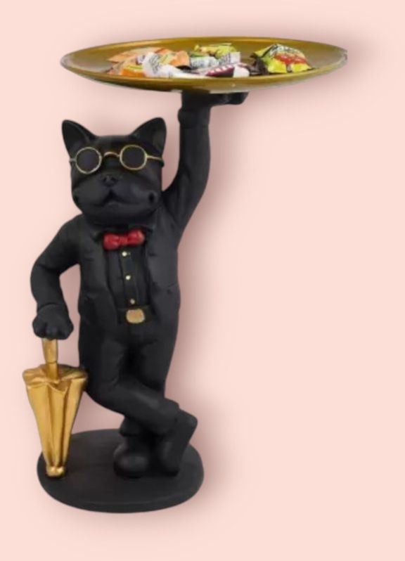 2. **Regal Retriever**: This elegant tray statue depicts a golden retriever sitting proudly, its gaze full of loyalty and warmth. The tray, shaped like a stylish collar, offers a sophisticated touch to your home decor while providing a perfect spot for keys or coasters.