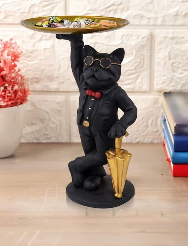 Sure! Here are some fun descriptions for a cool dog tray statue: